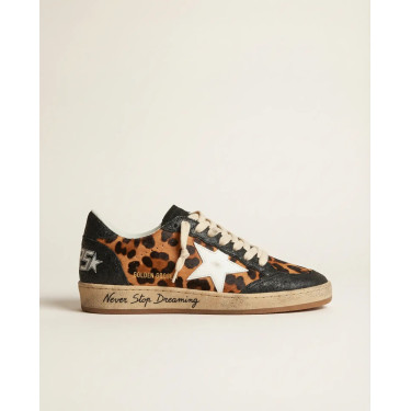 Дизайн Ball Star вдохновлен баскетбольной классикой, что делает их универсальным дополнением как для повседневного гардероба с джинсами, так и для более смелых сочетаний с платьями или строгими брюками. Характерный леопардовый принт придает обуви дерзкий характер, а фирменная отделка Golden Goose создает неповторимый эффект естественного состаривания, который выделяет эту пару среди стандартных моделей.
