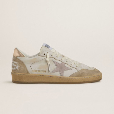 Ball Star Sneakers in White Leather With Rose Gold Heel Tab