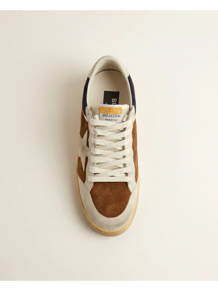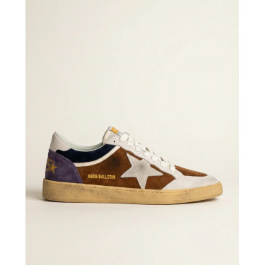 Кеды Golden Goose Mens Ball Star — это воплощение эстетики винтажного баскетбольного стиля 80-х в премиальном исполнении. Модель выполнена из высококачественной замши благородного коричневого оттенка, что придает образу глубину и сдержанную элегантность. Уникальный дизайн с контрастной звездой и задником цвета «баклажан» выделяет эту пару среди классических повседневных моделей, делая её центральным акцентом вашего гардероба.