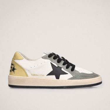 Mens Ball Star Sneakers in Black Leather With Yellow Star and Yellow Heel Tab