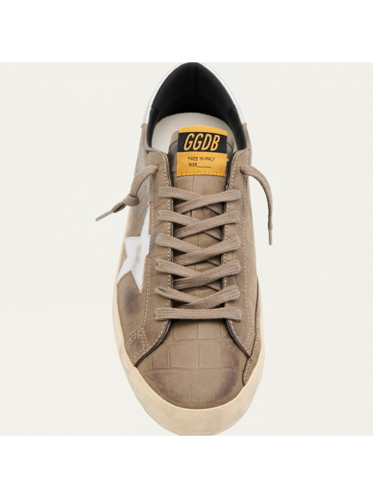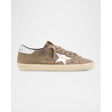 Mens Super-Star Sneakers in Brown Croco-Effect Leather