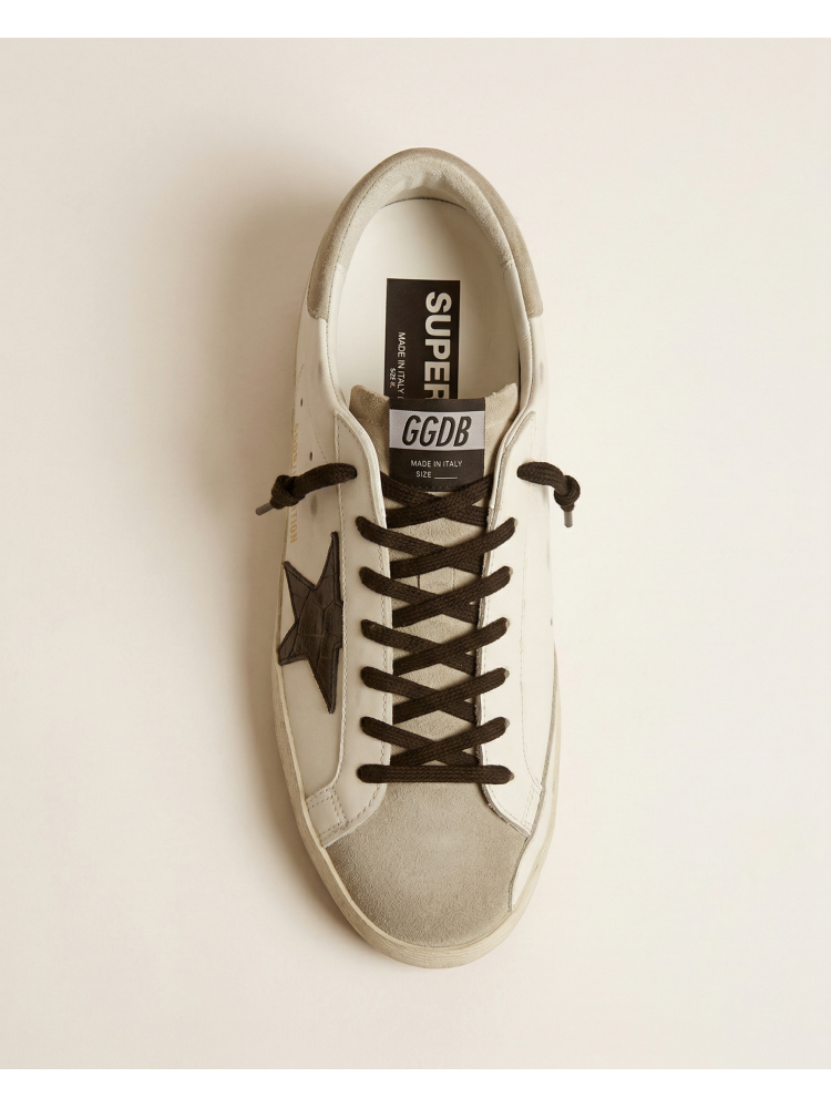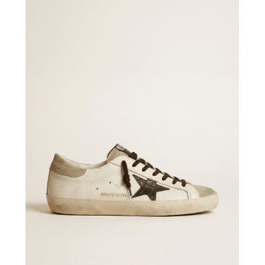Mens Super-Star Sneakers in Leather With Brown Python-Print Heel Tab
