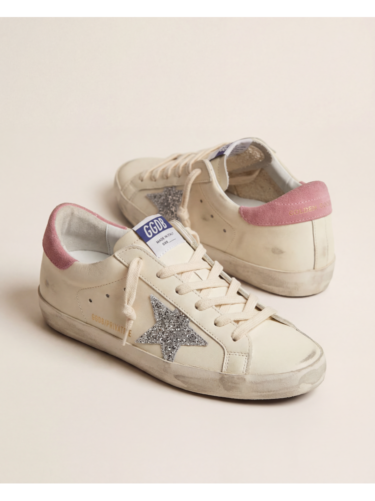 Станьте центром внимания с кроссовками Golden Goose Super Star Beige silver glitter star. Эти оригинальные кроссовки сочетание роскоши и уличного стиля, создавая идеальный баланс между элегантностью и повседневной практичностью.