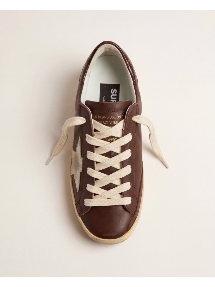 Men's Super-Star Sneakers in Leather With Brown Python-Print Heel Tab