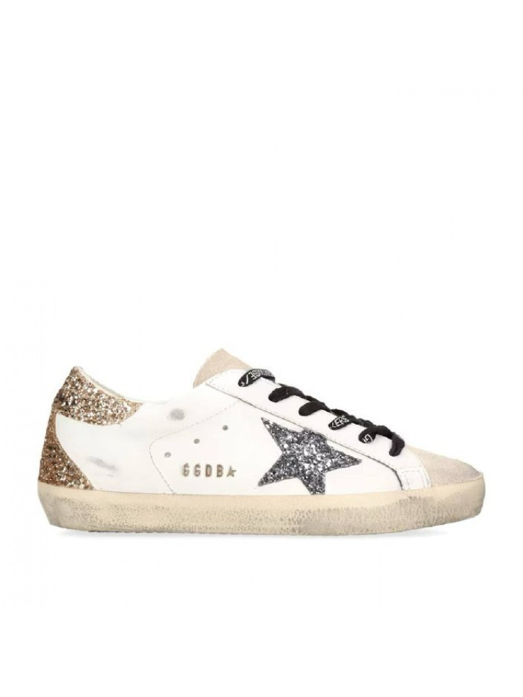 Women's Super-Star with nude leather star and gold glitter heel tab