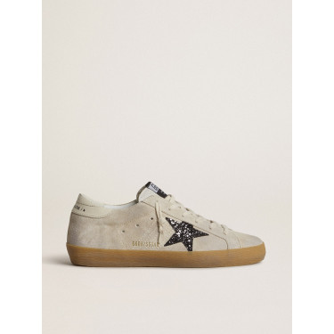 Super-Star in ice-gray suede with silver glitter star and leather heel tab